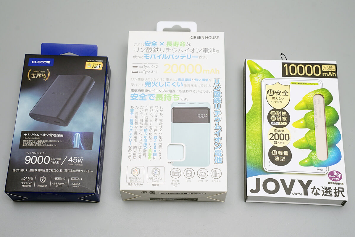 逆に夏の暑さ対策については、筆者はすでに「リン酸鉄リチウム」を積極的に導入しています。ほとんどの製品において動作温度範囲0〜40℃と一般的なリチウムイオンモバイルバッテリーと同じですが、どの製品も発火や爆発のリスク低減をうたっています。