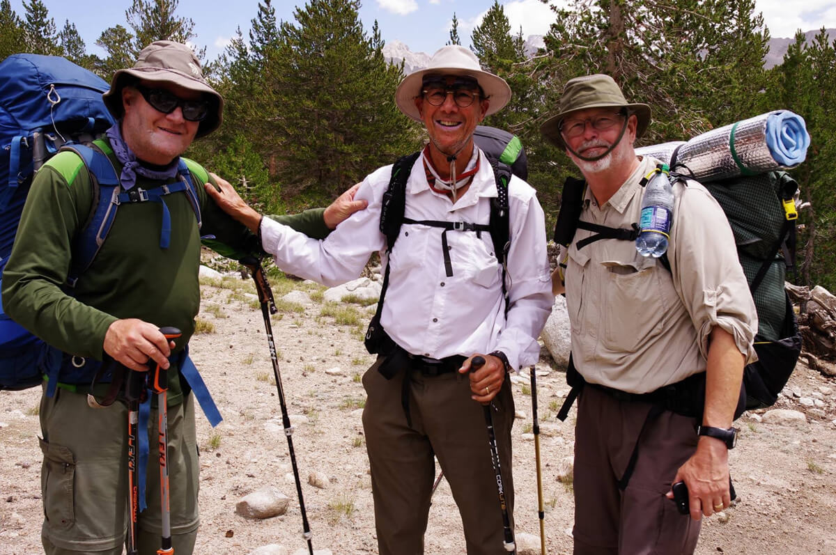 そういえば、2018 年のこと、ここで三人のハイカーと会って立ち話をした。水場を聞かれたのがきっかけである。シュルーマーの話をすると、近所に住んでいるという。中央がミカエル・ホーフマイヤで、トレイル・ネイムはパン・ティルト (Pan Tilt)、写真の合成用語のようだ。左の人はセクション・ハイカーで、今回で JMT のスルーが完成するという。