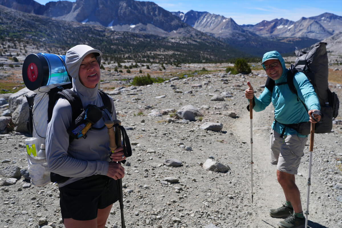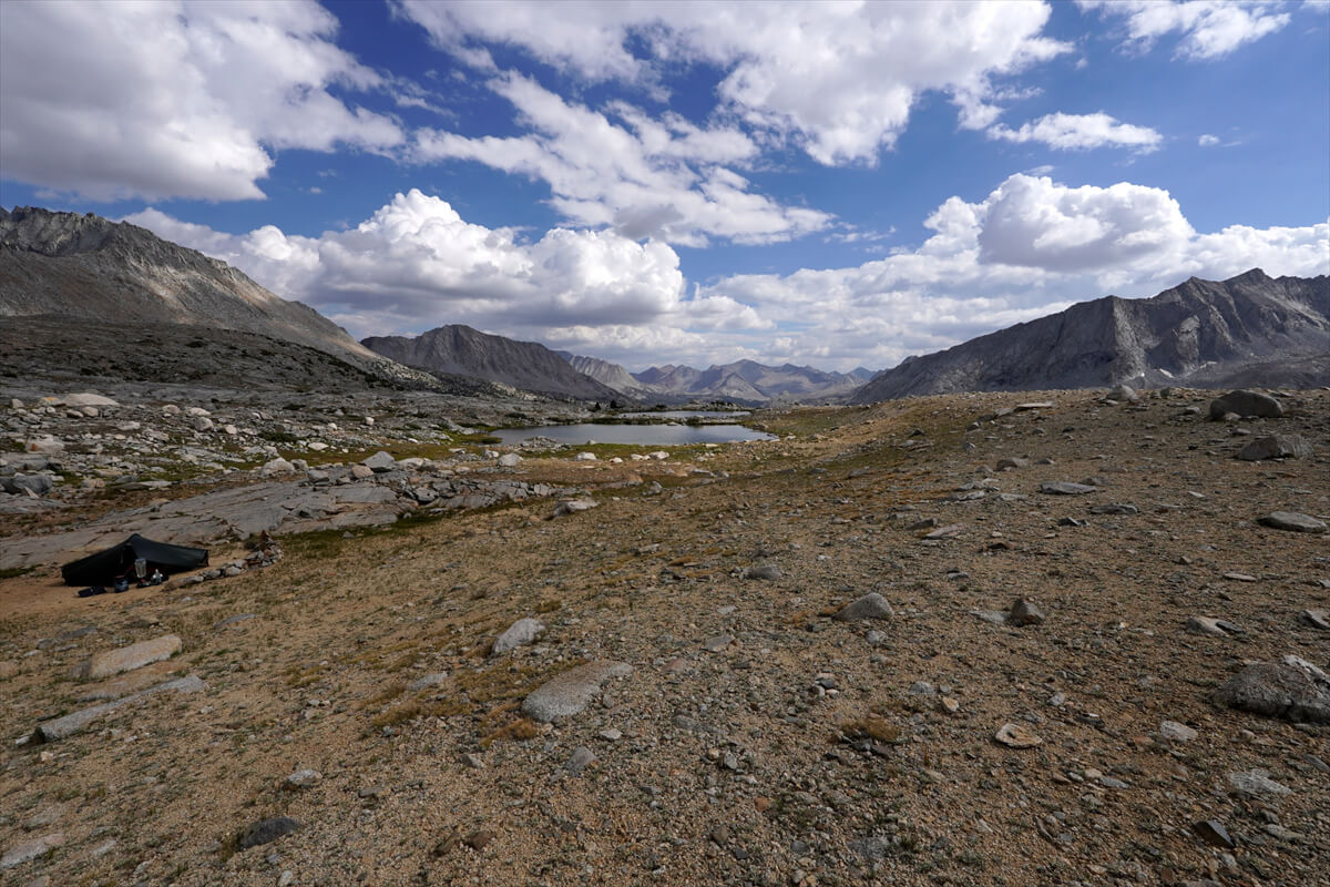 アッパー・ベイズンは、広々として快適である。すれ違ったハイカーたちの写真を図 6.7 に示す。雰囲気からは経験豊富な PCT ハイカーだろう。バックパックは Trail Bum の GO-ON と思われる。マザー・パス直下の池もなかなか素晴らしい場所だ (図 6.8)。少なくも 2 回はキャンプした。