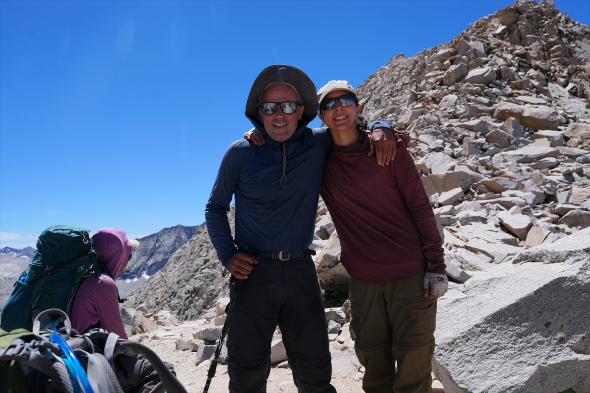 まず、ハイカーたちを撮影し、自分も撮ってもらうことにした。たまたま、ロバート・カラミツォス さんにカメラを渡すと、なかなかの構え、何度も構図を変えて、撮ってもらった。その一枚を図 6.9 に示す。