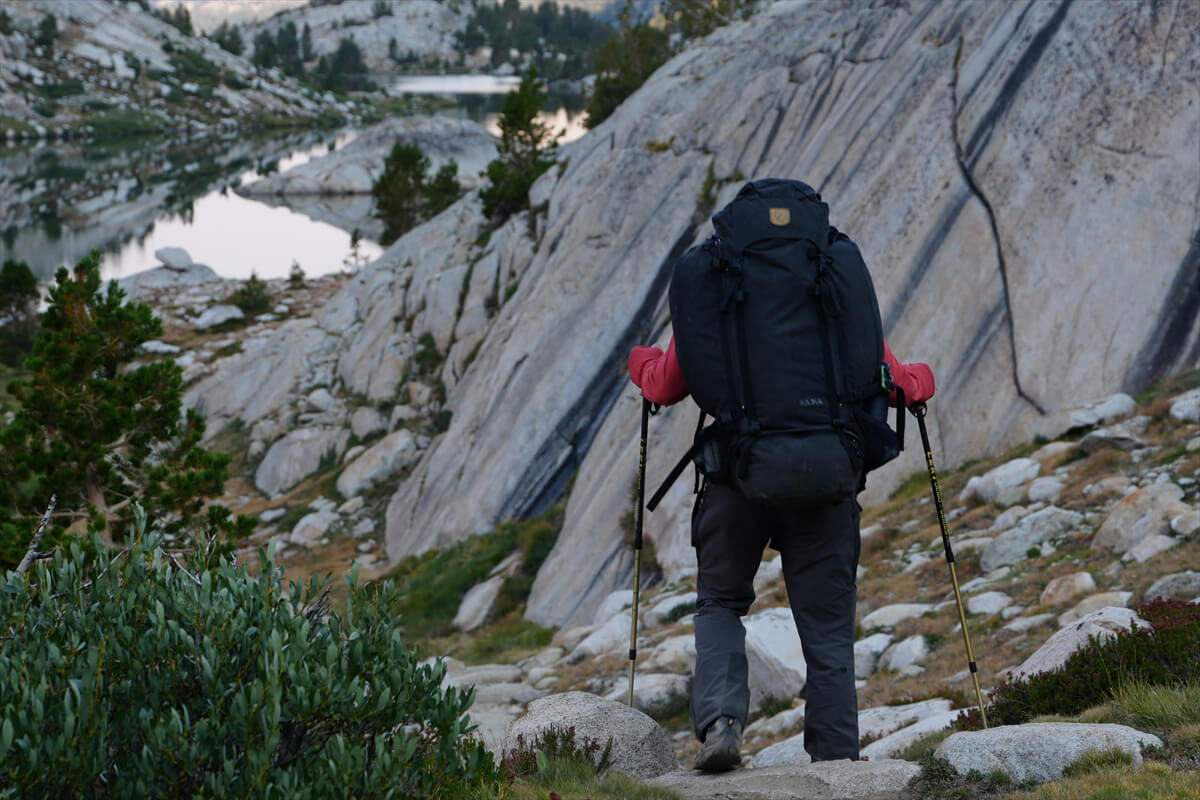 後ろからハイカーが追いついてきた。もちろん、先に行ってもらうが、ちょっと変わったバックパックなので。背後から撮影しておいた。それが図 8.13 である。バックパックはスウェーデンのフェールラーベンで、カイカ 75 である。おそらくヨーロッパからのハイカーだろう。スウェーデン製の 75L のバックパックを背負うアメリカ人いない。ちなみに筆者もスウェーデン製のスーリーである。頑丈なアウトドア製品が多い。