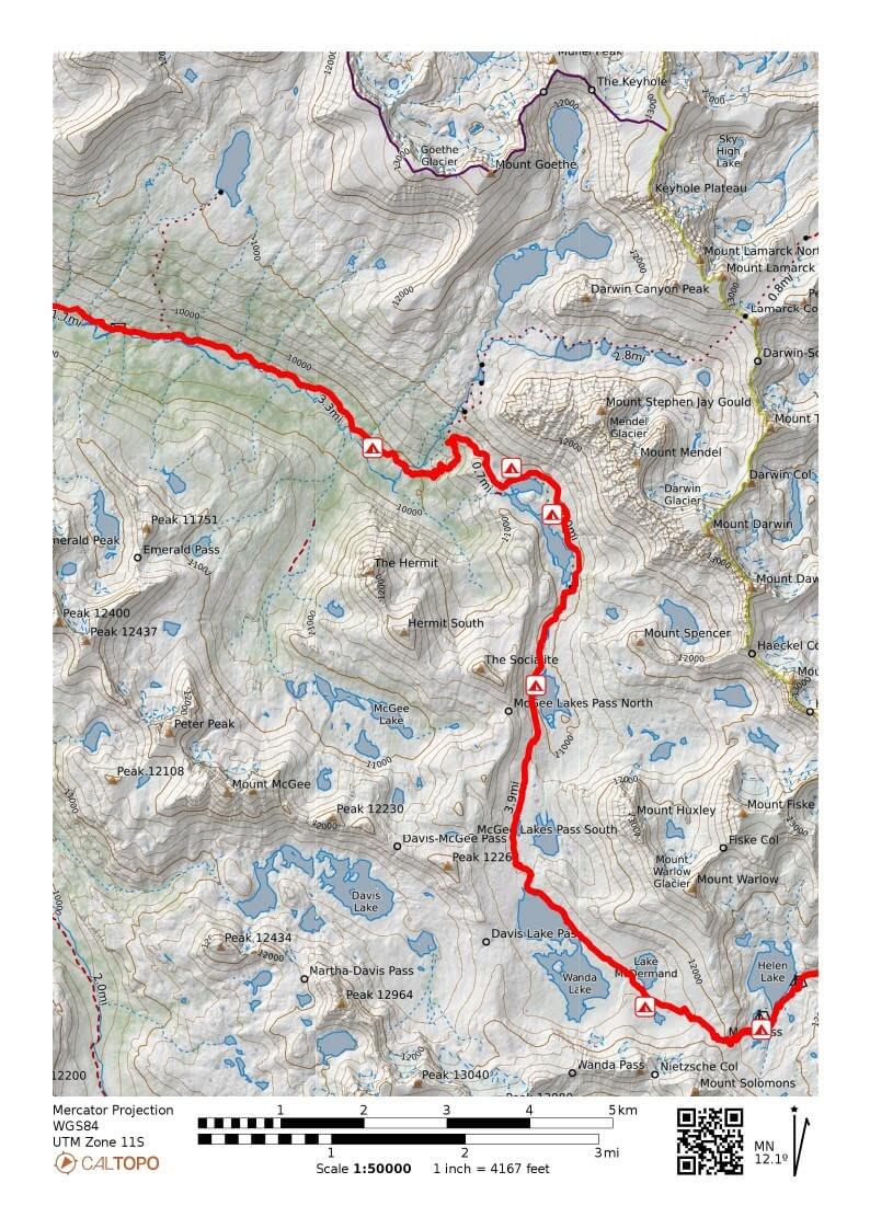 2012 年、この辺りでエキゾチックなカップルとあった。ノース ・レイクを出発してパイユート・パス・トレイルを下り、そこから方向を転じて登ってきたという。これからパスを越えて、ラ・コンテ・レンジャー・ステーションからサウス・レイクへ向かうらしい。この時にこのループを初めて知った。2017 年の北向き JMT の時についでに千恵子と試みようとしたが、途中で筋断裂に見舞われて失敗した。