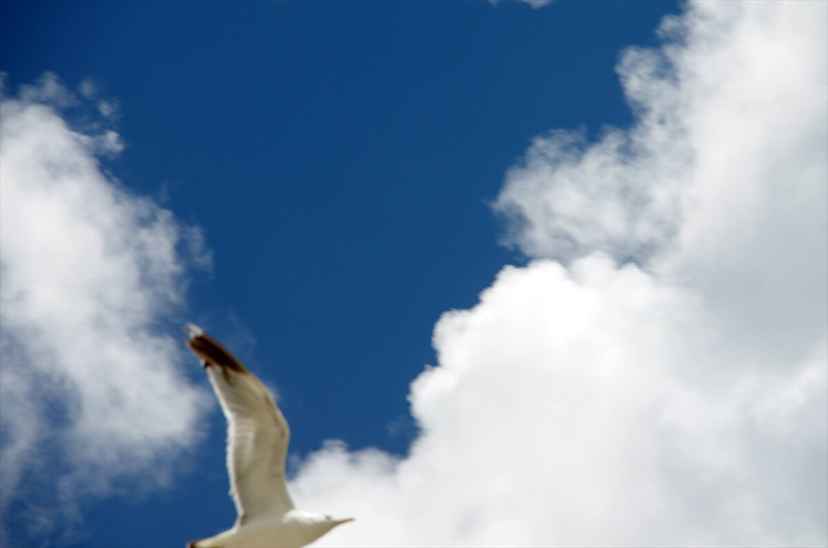 突然、鳥が飛んできたので、カメラで速写したが、ピントが合わないし、的を外している。ただ、ミューア・パス近くで写したので、載せておく。図 8.4 のようにカモメである。モノ・レイクが塩湖だからか、カモメの拠点になっていて、ここまで飛んでくるという。標高は 3,600m もあるのだが、カモメにはどうってことがないのだろう。