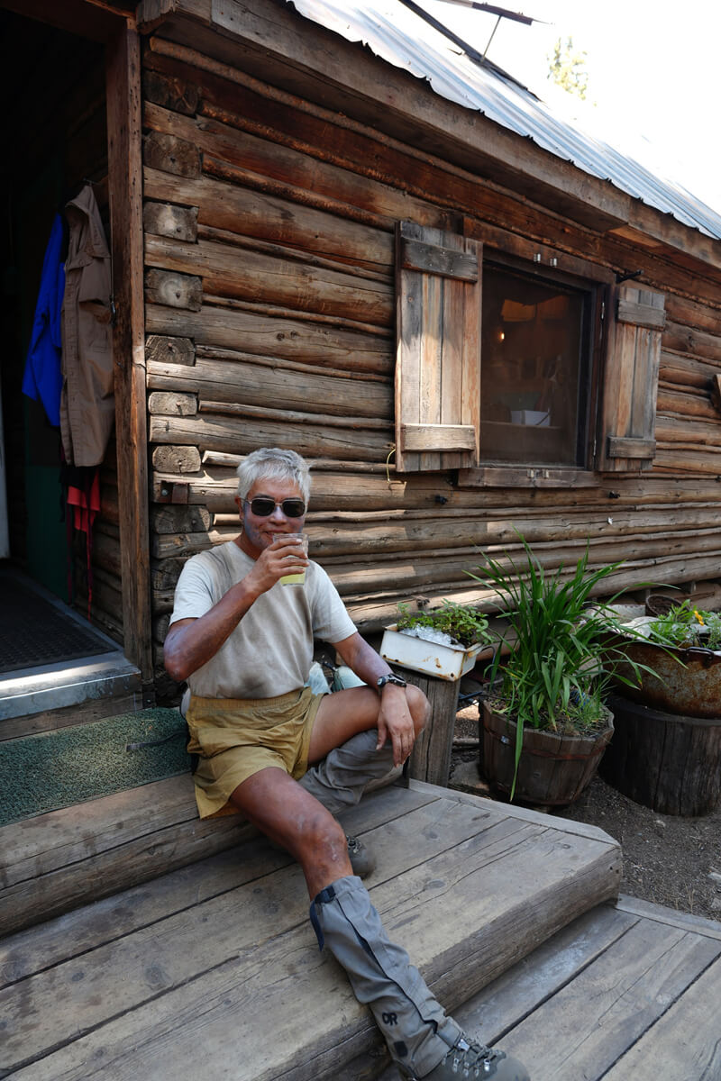 川を渡ると、再び、比較的平坦なトレイルとなる。途中でジョン・ミューアを記念して建てられた小屋がある。一時間ほど進むと JMTとの分岐があり、MTR へは川沿いのトレイルを進む。トレイルは下るにつれて、歩きにくくなる。MTR 手前では急な下り坂になる。MTR は収容人数が少ないので、宿泊は困難である。ほとんどのハイカーはリサプライを受け取って、川のそばでキャンプをする。幸い、ジェイムズさんが予約してくれたので、初めて MTR に宿泊した。VVR で顔見知りのデイブが料理長だったのにはびっくりした。次の機会はないと思うが、素晴らしい食事と素朴な温泉を楽しませてもらった。
