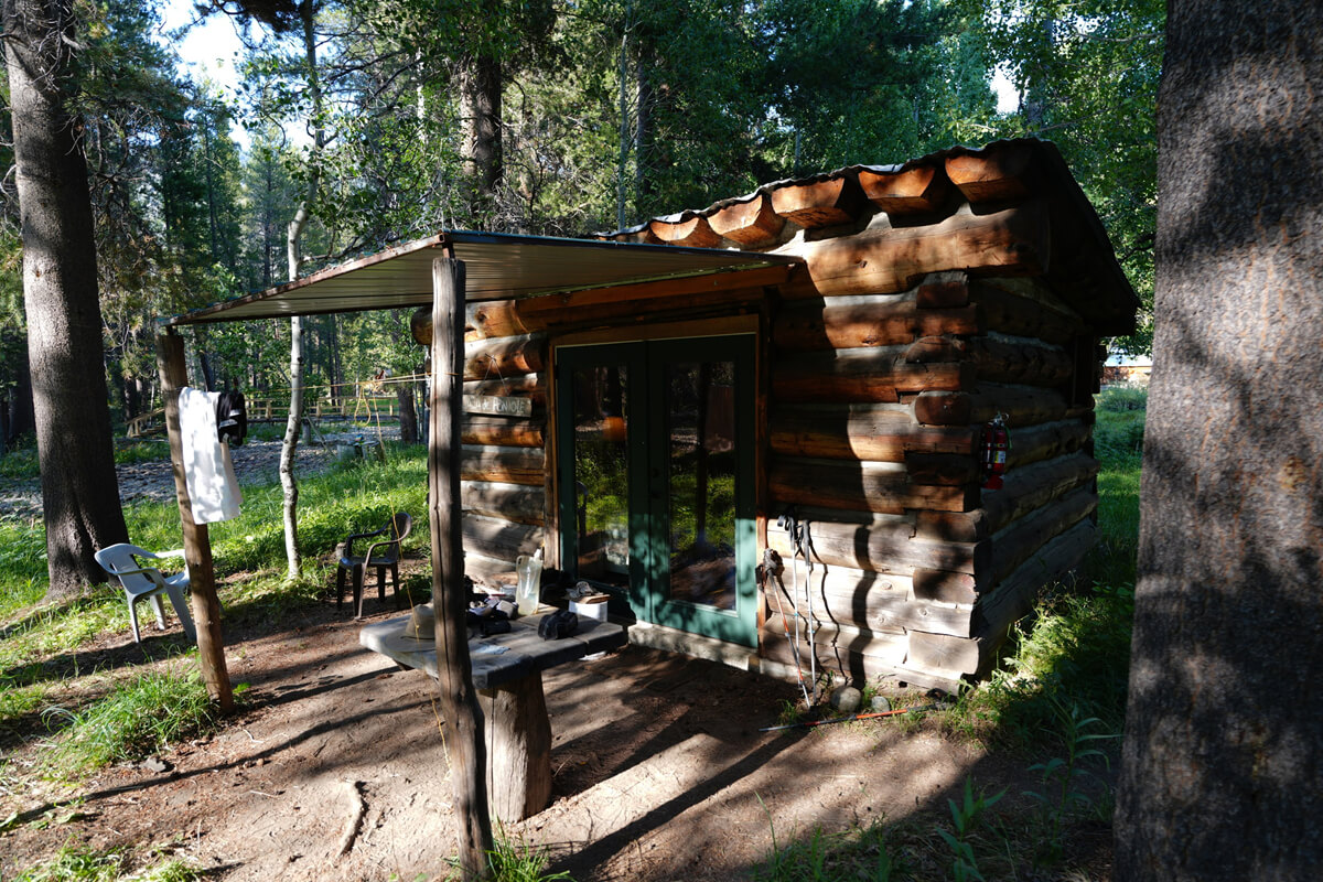 いくつかの枯れ川を通過すると、左手にジョン・ミューアを記念して建てられたキャビン (図 10.7) がある。古くて宿泊は困難である。昔の作業小屋だと思う。夏前なら水はあるのかもしれないが、夏は川まで遠い。