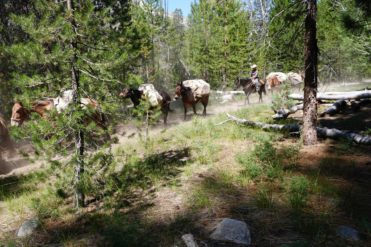 少し先でパック・トレインと出会った。図 10.8 である。たぶん、MTRからビショップあたりに向かうのだろう。埃が酷いので、なるべく離れた場所に退避するのがコツだ。
