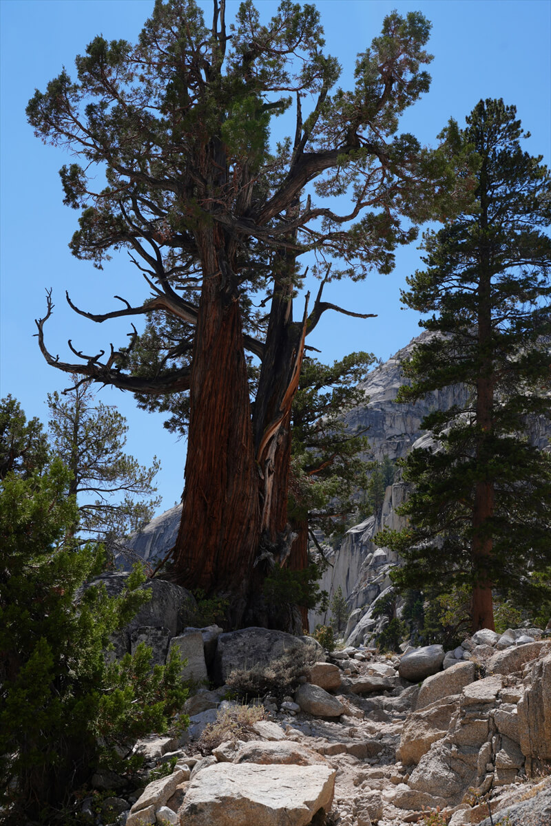 小さなボートに乗り、レイク・エディソンの対岸に着いたのが午前 9 時。ピストン輸送の 2 番目なので遅くなった。バックパックは 28kg と最大荷重なので、慎重に皆さんの後から歩く。JMT との合流点は 10 時着。30kgで歩荷トレーニングしてきたので、この程度の重さなら歩くのが少し遅くなる程度である。