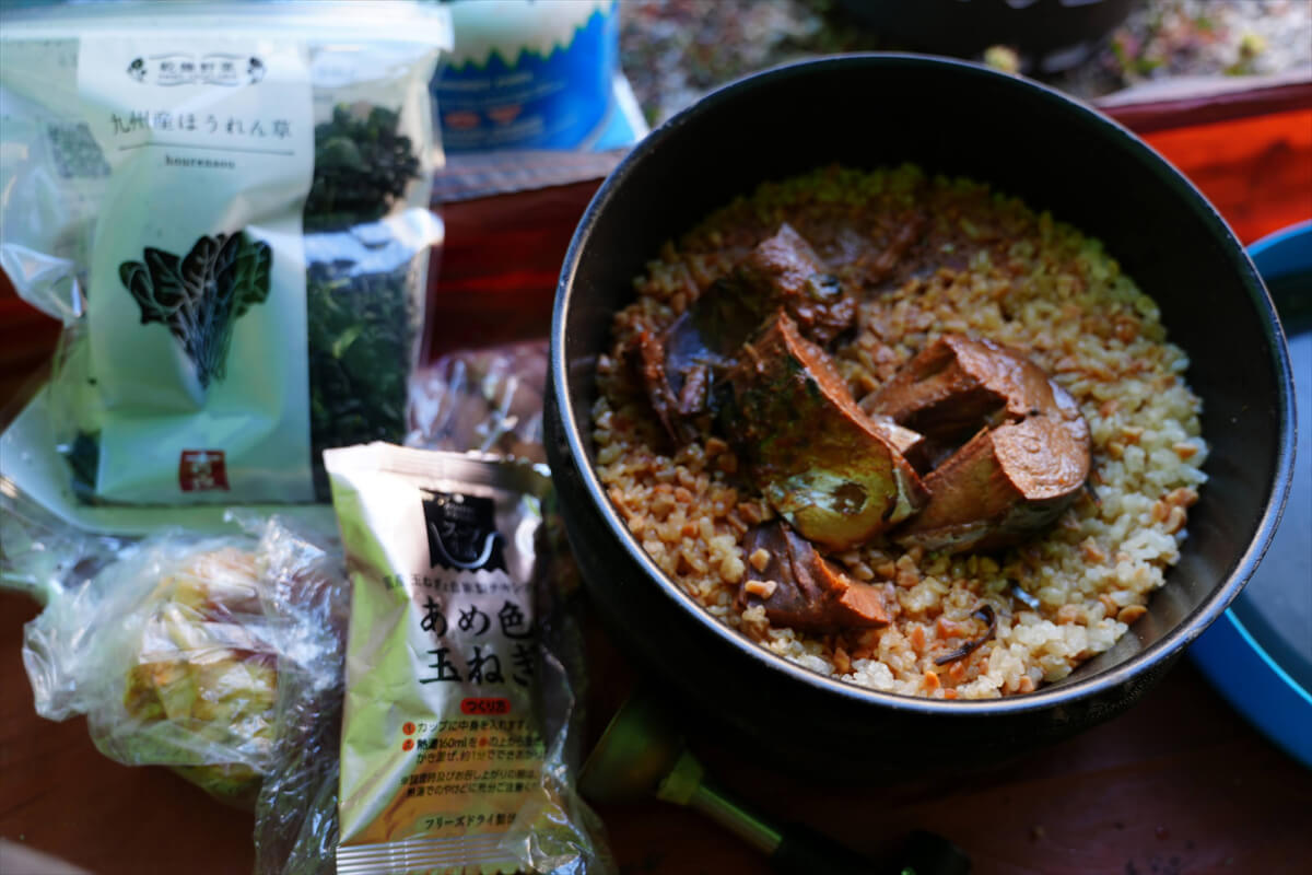 予定通りにシルバー・パス・レイクに来た。夕食は重い缶詰を早めに処分ということで、図 12.26 の鯖缶定食である。夕食後は、暇なので、カメラをベア・キャニスターに乗せて、星空をリモコン撮影した。プログラム・オートでもマイナス 4 絞りくらいで良く写る。星空に興味はないのだが、暇で簡単という理由である。