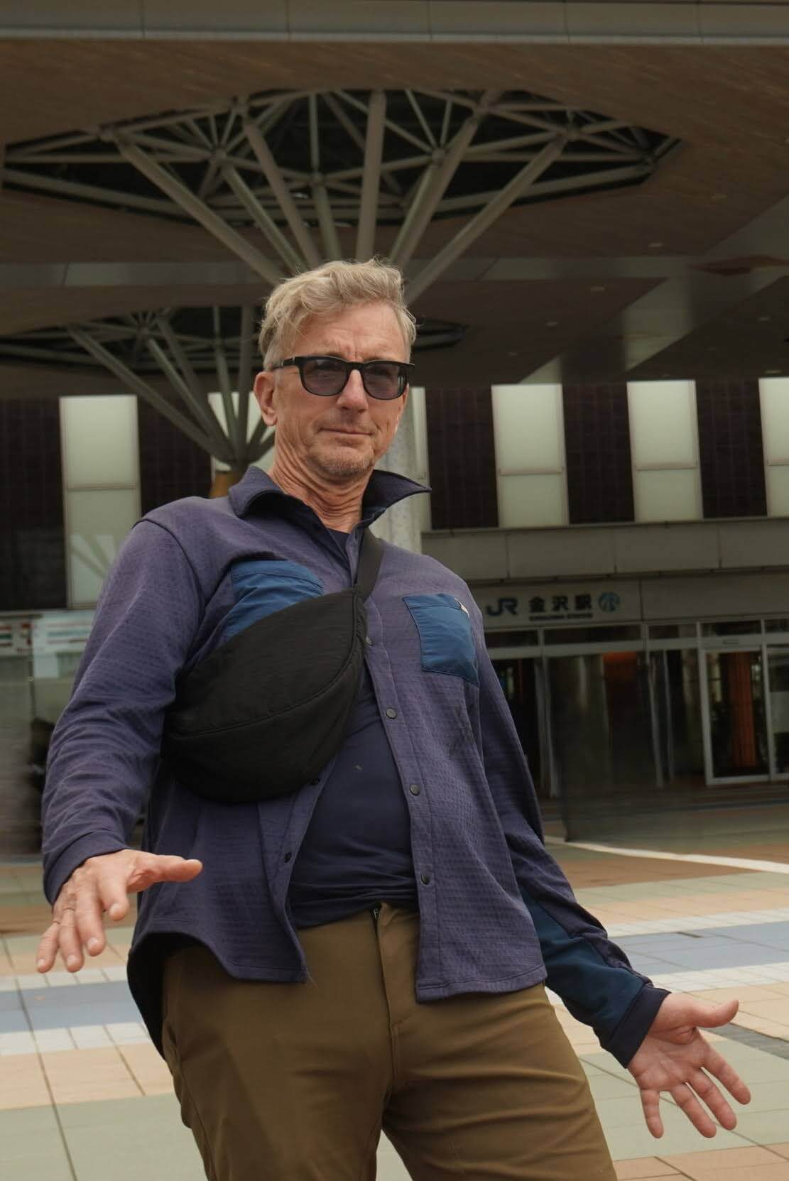 図 12.10: ボブ・シャタック。JMT は 13 回、その他、CDT、シャスタ、アラスカ、ネパールなどを歩いたベテランのハイカー。金沢駅にて。2024年撮影。