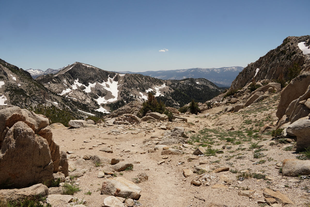 再び、スイッチバックで登るが、傾斜は緩めで、長くは続かない。途中、 3 名のハイカーが休憩していたが、下りのようだ。軽く挨拶をして先に進む。完全ドライの夏なので、途中の水場も干上がっていた。トレイルは水平になり、シルバー・パス・レイクの方に向かう。しかし、離れているので湖は見えない。