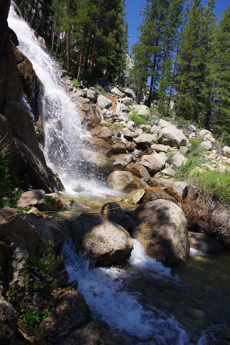図 12.21: シルバー・パス・クリークの滝。雪の多い季節だったので、6~7 月ならば通過困難な水量だっただろう。2017 年8 月12 日撮影。