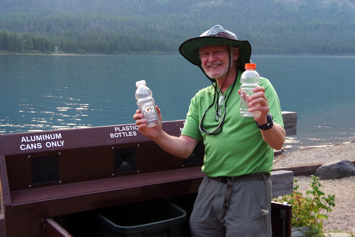 図 12.4: ゴミ箱からボトルを拾ってご満悦のトレイル・ハッカー、グレイシャー国立公園、2013 年撮影。