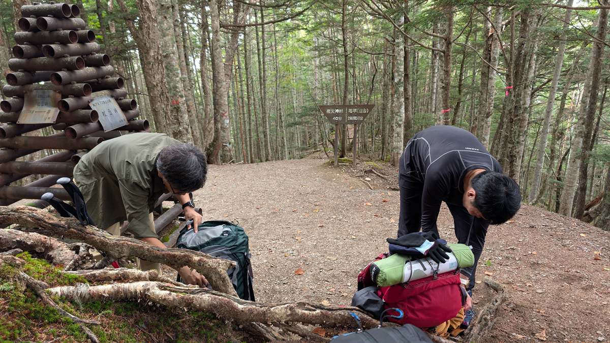 After discussing the location with the participants, they decided on Mount Houou, one of the 100 famous mountains in the Southern Alps. The theme of this trip was a tent-camping traverse, and for the first time, participants would carry a heavy load of luggage for two days and one night, including a tent, from Yashajin Pass to the finish line at Aoki Onsen, covering a distance of approximately 20 kilometers.