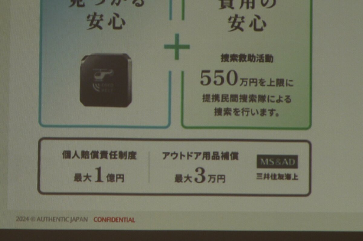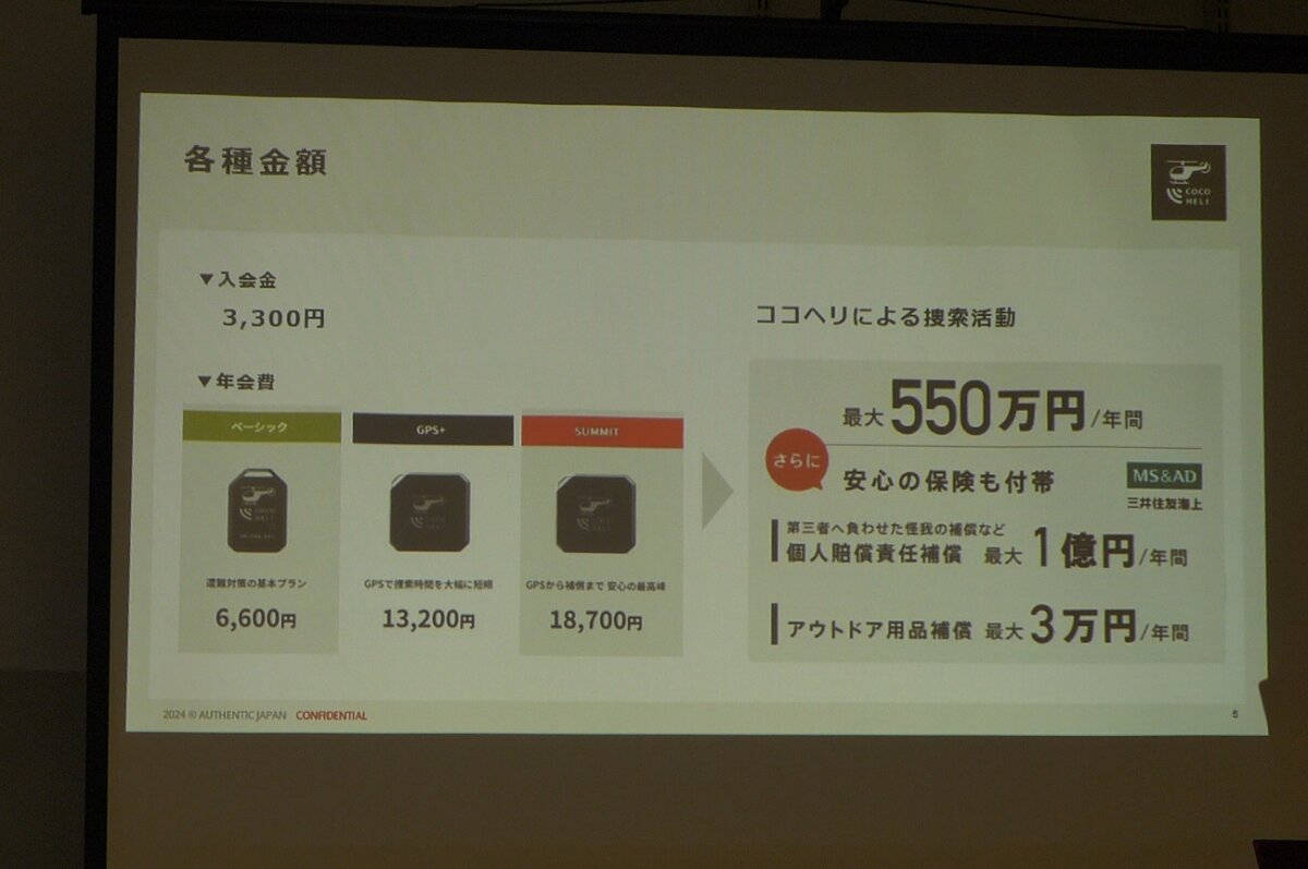 "So far, we've been talking about the basic plan, which costs 6,600 yen, and the annual fee is about 500 yen a month. If you think of it as the same amount as stopping by a convenience store before a hike, it's actually quite cheap. And the search fee is guaranteed up to 5.5 million yen a year! In reality, you can find someone quickly with a radio wave search, so it's unlikely that it will cost that much... but there was an actual case where someone slipped and fell while climbing."