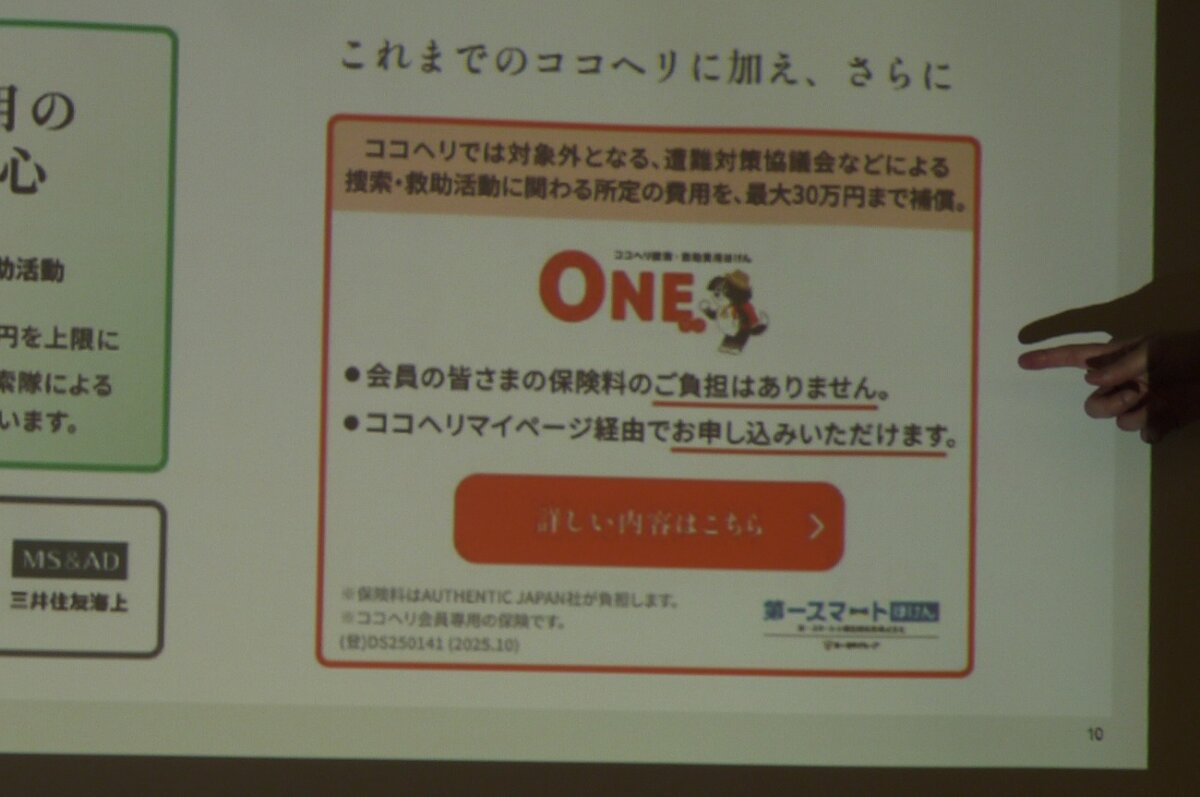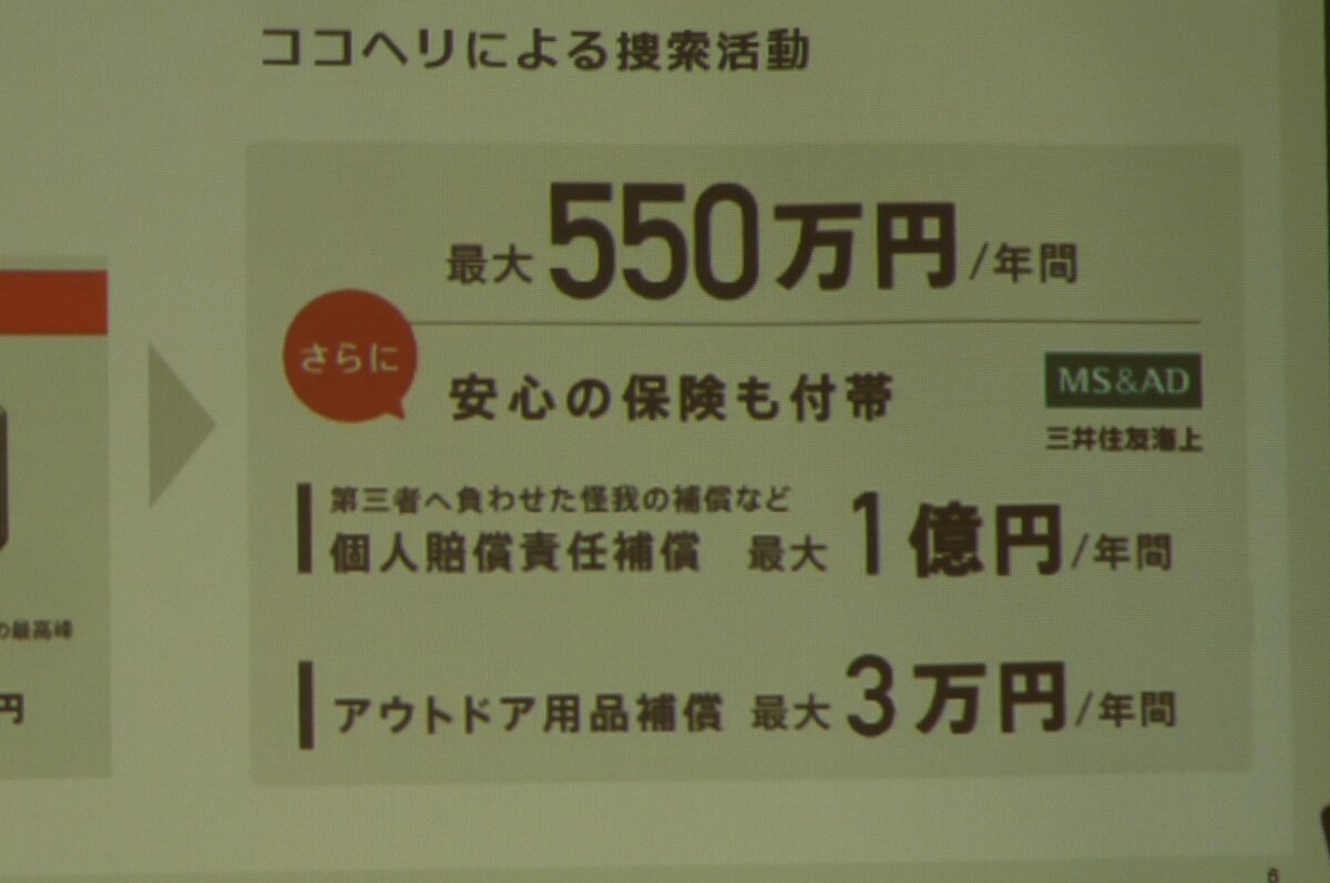 So, that 5.5 million yen a year is a "means" for search and rescue costs, and until now it was difficult to understand that it was different from "insurance," but Cocoheli has recently started including this insurance. What's more, even though you need to apply for it separately, it's a generous offer with no "additional costs."