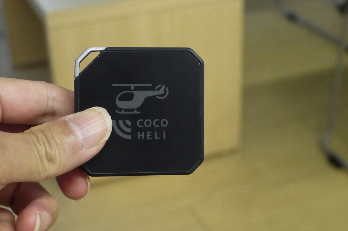 So what exactly is Cocoheli? He explains its strengths and uses a simulation that simulates an actual search. "So what kind of service is Cocoheli? First of all, it uses special wireless technology; its greatest feature is that all you need is this transmitter. This device is completely different from smartphones and is an extremely simple system that constantly emits radio waves that do not use a network and are picked up by a receiver."