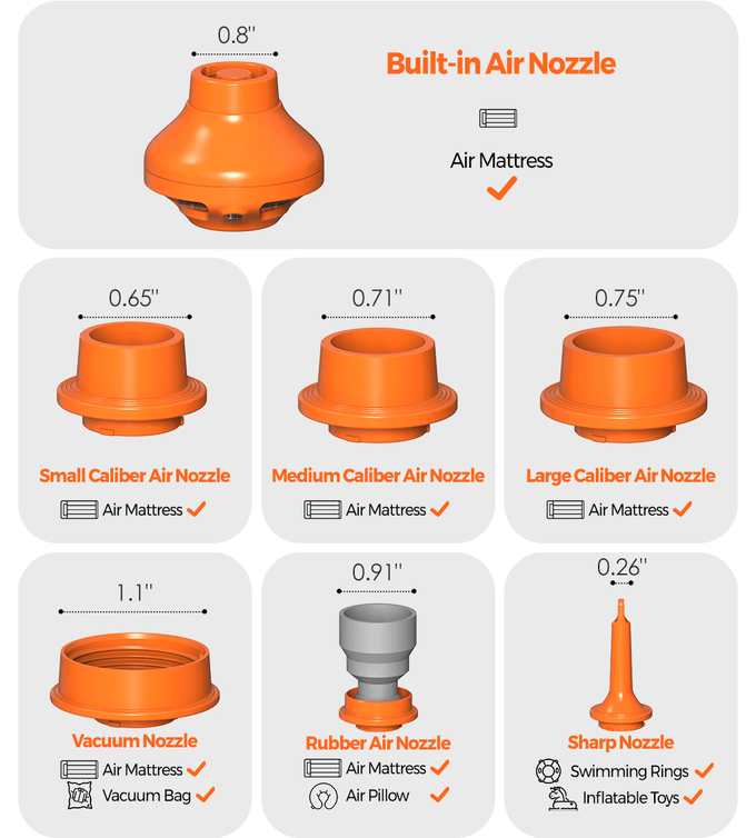 Simply insert the GIGA PUMP Air injection nozzle into the air mattress's injection port and connect a mobile battery.