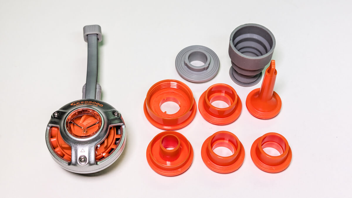 Recently, new products have been appearing one after another from various companies, and the voting period for the project on KICKSTARTER overseas ended the other day, and the ultra-lightweight air pump that everyone has been waiting for, the GIGA PUMP Air from AEROGOGO , has finally arrived. The small box contained the equally small main unit and several pump adapters. It was delivered in very simple packaging.