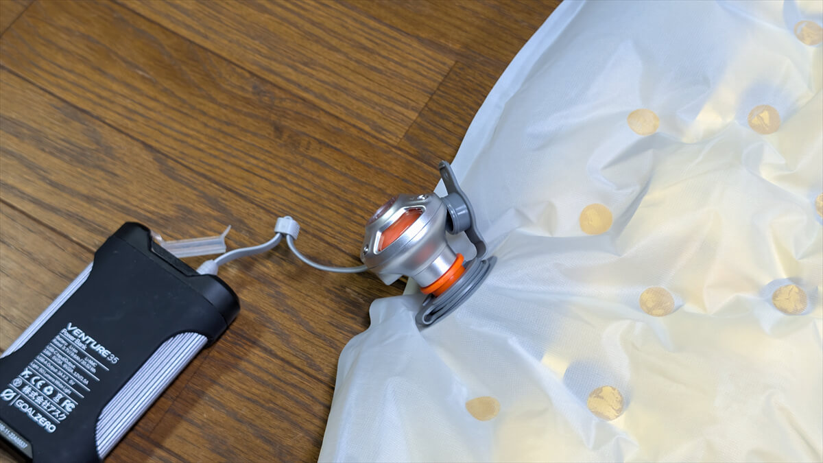 Another concern is power consumption. It only consumes 40mAh for about one minute of inflation, so each inflation uses about 25mAh. This means a standard 10,000mAh mobile battery can inflate the air mattress 400 times. Alternatively, the iPhone 16 Pro's battery is 3,582mAh, so it's easier to understand if you think of it as about 0.7% of the power of a smartphone battery. Either way, the power consumption is negligible.