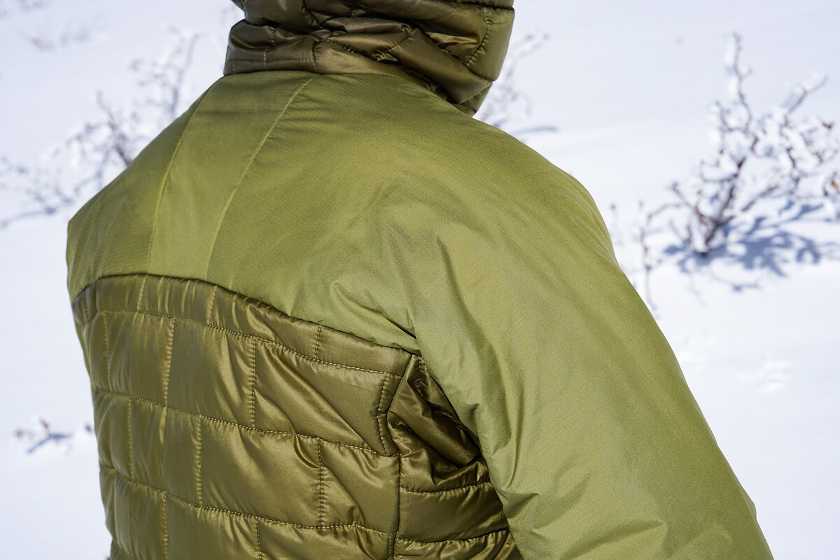 Although we said that its high thermal insulation makes it unsuitable for active wear, we can certainly imagine situations where you might find yourself skiing in unexpectedly low temperatures the Hi-Loft Nano Puff Hoody , or on a rugged mountain trail covered in bush, or in a field with a mix of steep rocks and ice. The area from the shoulders to the cuffs is the part most likely to be hit by rocks and tree branches, but these areas are reinforced to make them even sturdier and able to withstand hard use.
