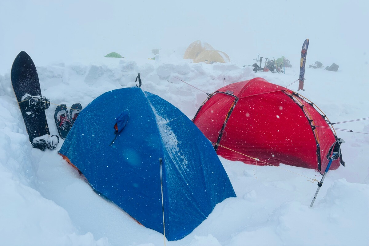 Although synthetic insulation is slightly heavier than down when trying to achieve the same level of warmth, synthetic insulation has the advantage of not losing its warmth even when wet. On snowy mountains where everything is covered in snow, the temperature is low, so you might think that you won't get wet, but the inside of a tent is warmed by people's body heat and breath, so any condensation or snow that has frozen inside the tent can melt, causing your clothing to get wet. In such situations, you need to be careful with down clothing, which is vulnerable to water, but with synthetic insulation, you don't have to worry about it getting wet