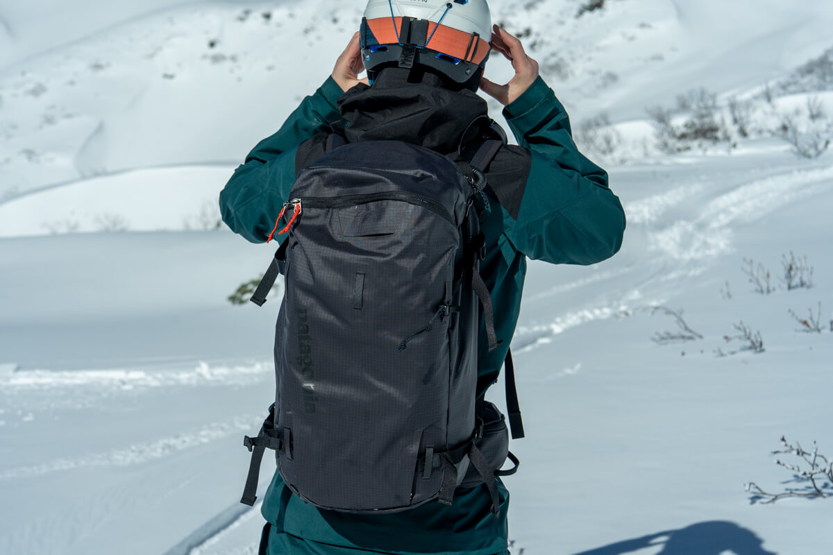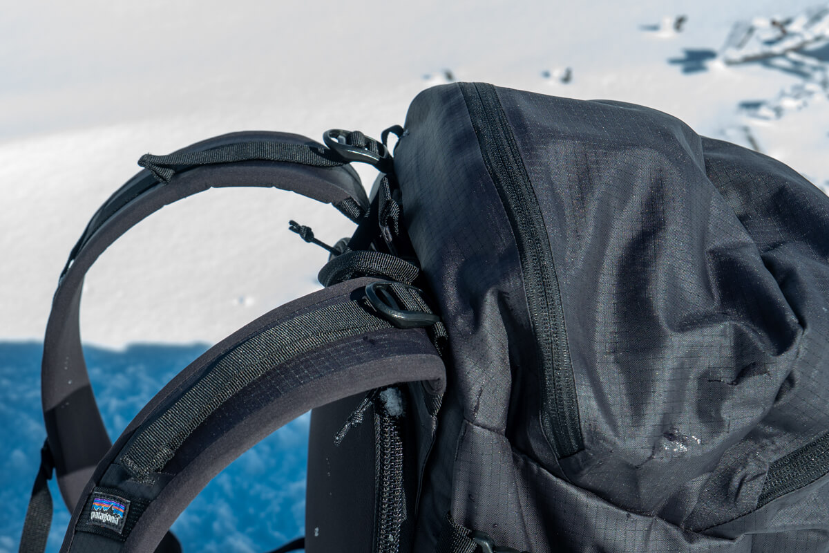 The main compartment is accessed by opening the back panel with a zipper, making it a clamshell style. This is the most convenient style for snowy mountains and backcountry adventures. The zipper is made by durable YKK and has a large tab that can be easily operated even with gloves on.