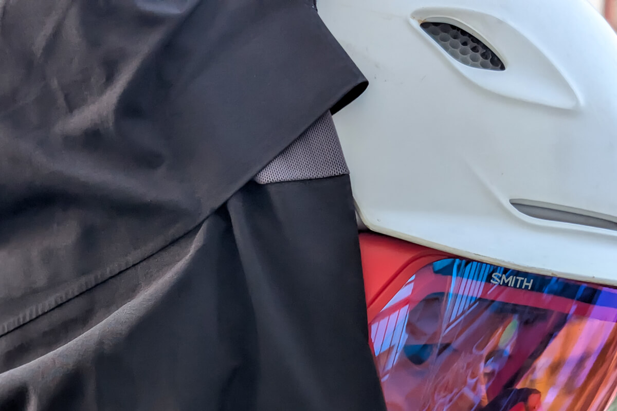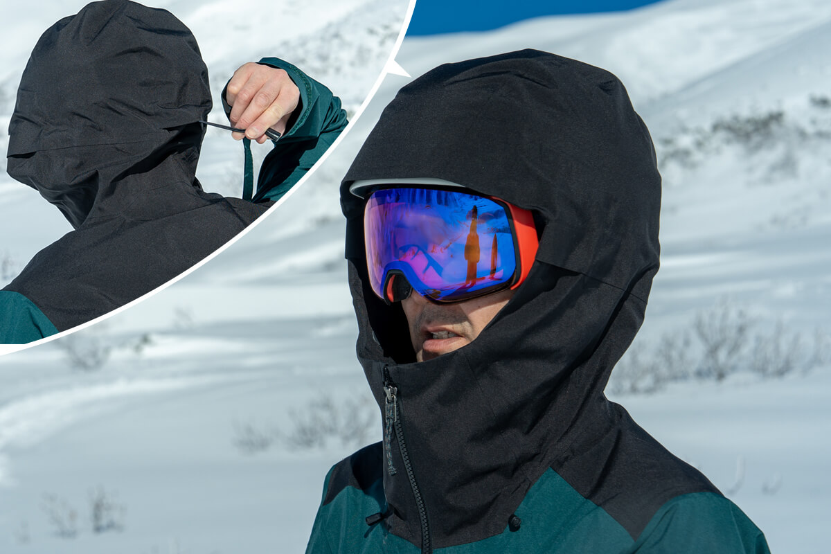 The hood can be adjusted three-dimensionally to fit snugly whether you're wearing a beanie or a helmet, and it fits perfectly with either so as not to obstruct your field of vision (see photo below).