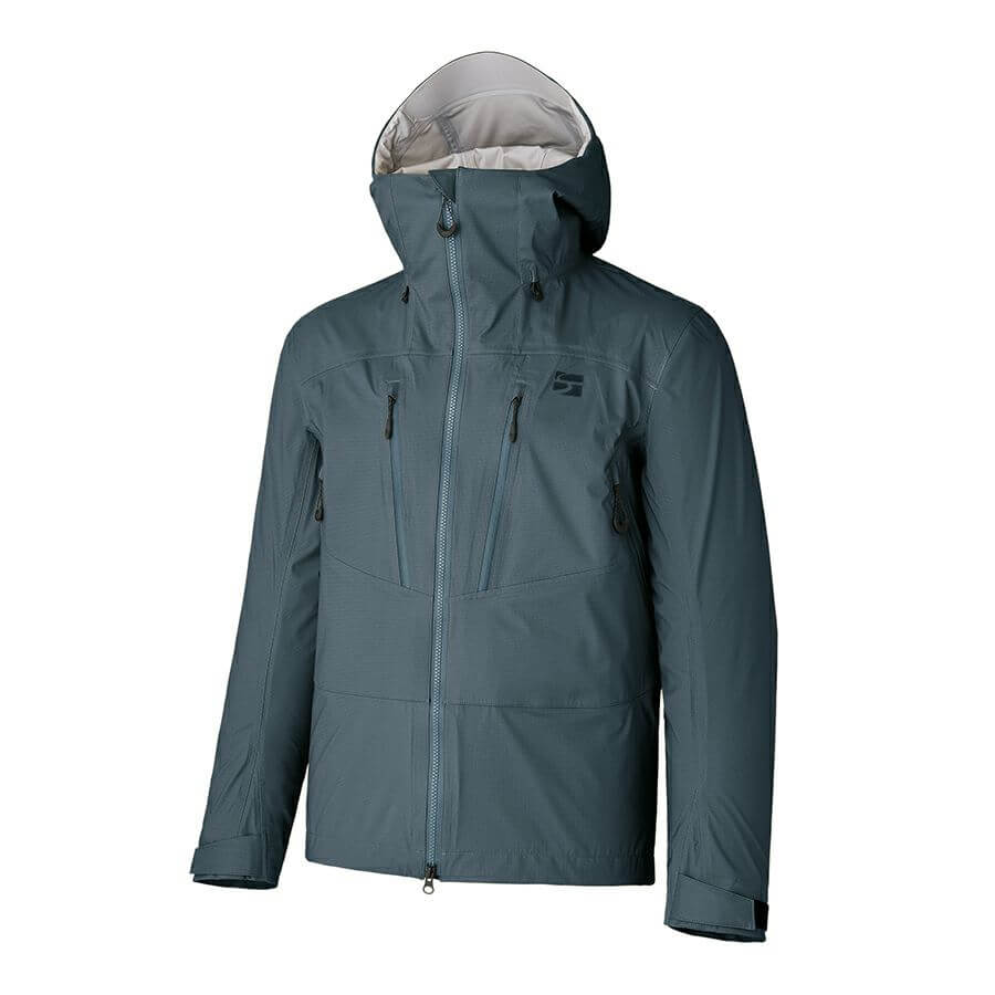 こちらの一着は最新鋭のしなやかなGORE-TEX PROを使い、極限まで重量を切り詰めることでなんと300(330?)グラムという驚きの重量を実現。ポケットも脇下ピットジップもついているのに。さすがに厳冬期の冬山はおすすめしませんが、スノートレッキングからスキーツーリングまで、ハイテンポな幅広いアクティビティに使えそう。