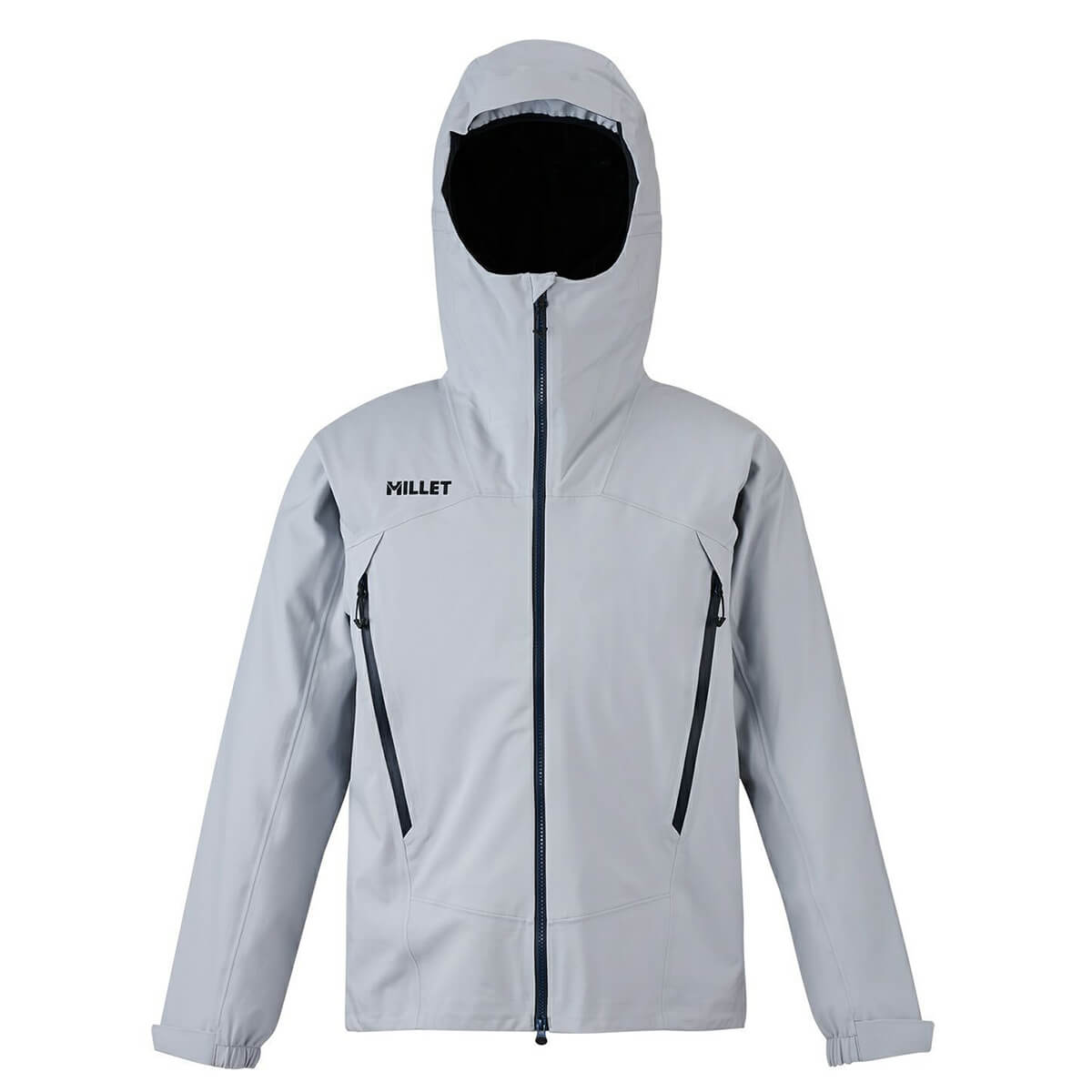 ハードシェルには防水・防風・透湿の機能が備わり、過酷な環境に耐えうる強度のあるウェアですが、他にも冷気をシャットアウトする襟やフードの構造、雪面滑落時の摩擦抵抗や撥水性能を高めるザラッとした質感の表生地、グローブ着用を想定した袖・裾など、雪山で快適に使用するためのさまざまな細かい機能や工夫が凝らされています。