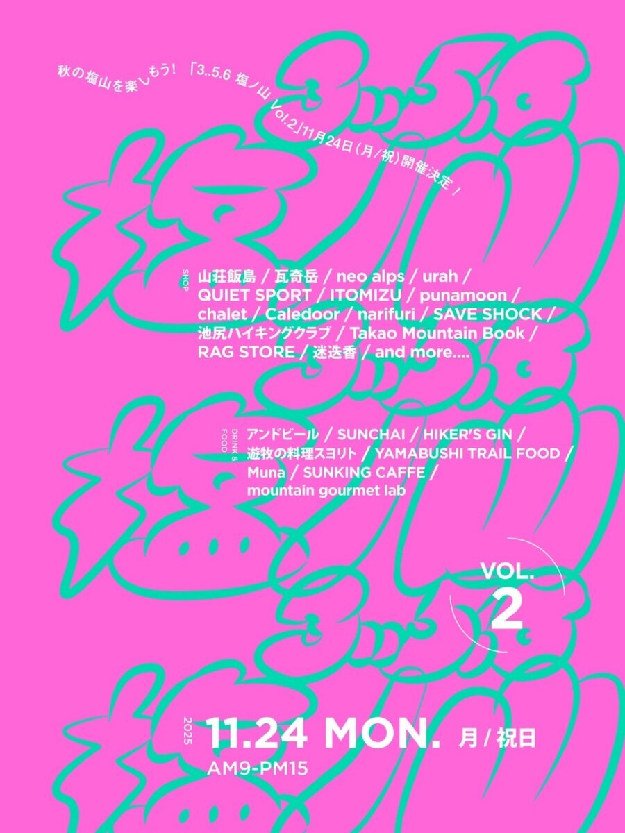 2025年5月の初開催で多くの反響をいただいた、山梨県塩山(えんざん)でのマーケットイベント「3..5.6 塩ノ山」が、この秋再び2025年11月24日(月・祝日 勤労感謝の日)に開催されます!