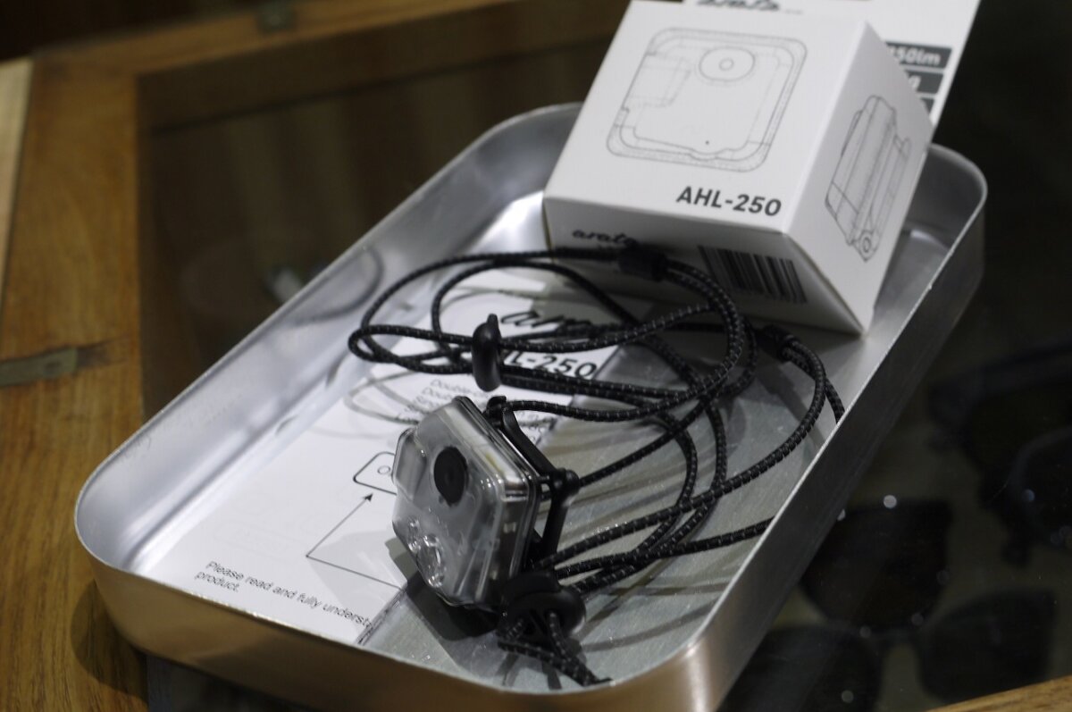 カウンター上には今各所で話題沸騰中のarata新型ヘッドランプのAHL-250が、近日ギアジンでもレビュー予定ですのでお待ちあれ!