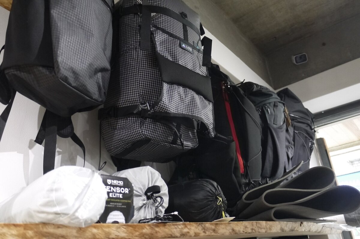 こちらは最上段のバックパックをはじめとしてギア多めのプッシュ。