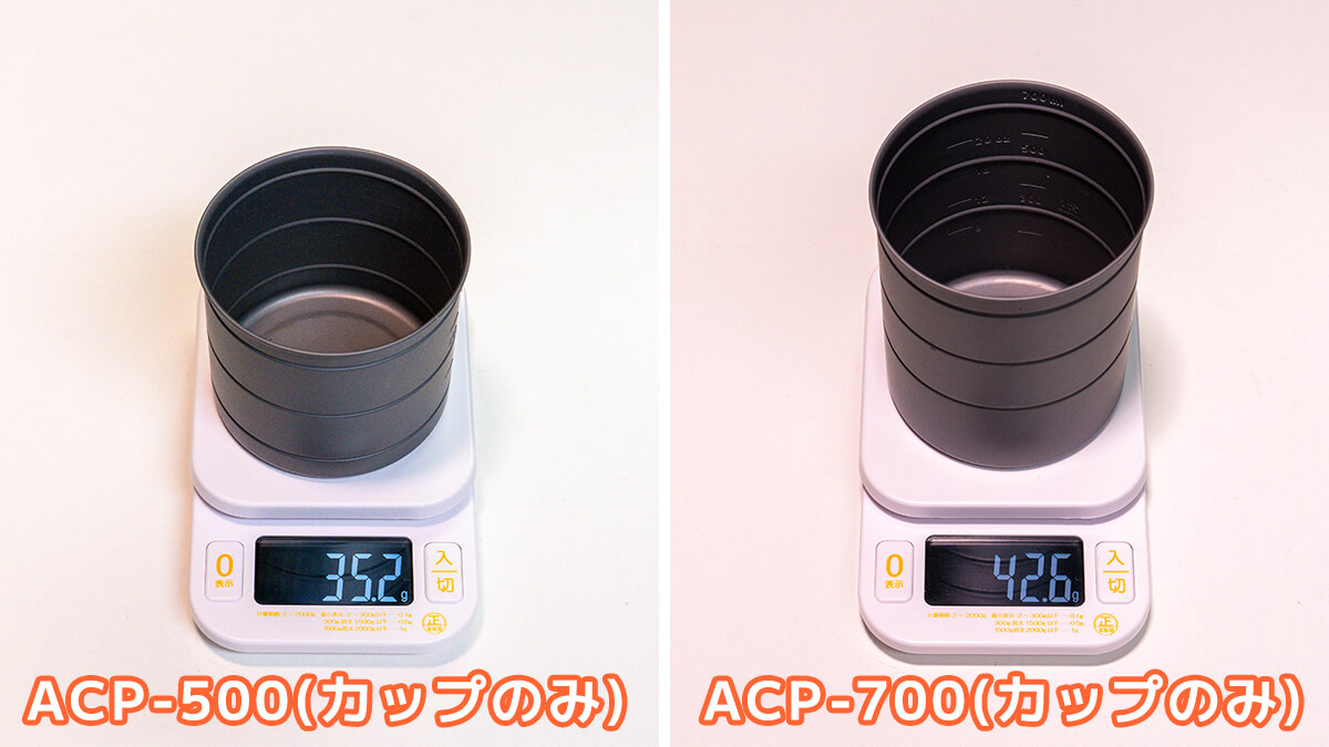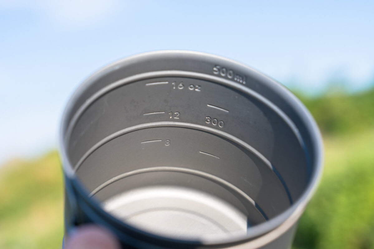 次に容量目盛りもしっかりついています。しかもこの目盛り、ビードの線が目盛りも兼ねており、ACP-500では100ml, 300ml, 500mlを、ACP-700では300ml, 500ml, 700mlを表しているというのですから、ここでもまた細部まで無駄のない作りに感服してしまいます。