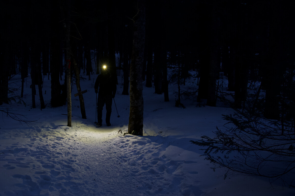 最大光量が250lmであるAHL-250は市場に出回るヘッドランプと最大光量を比較してみると明るいヘッドランプとは言えません。最大光量が1000lmを超えるような出力を放つヘッドランプもありますし、250lmという光量は出力の小さいヘッドランプと言わざるを得ません。机上にスペックを並べてみると出力が足りないのではと感じてしまうAHL-250ですが、実際にフィールドで活動するために必要な光量はどのくらいなのか。それを確かめるべく暗闇の山で試してきました。