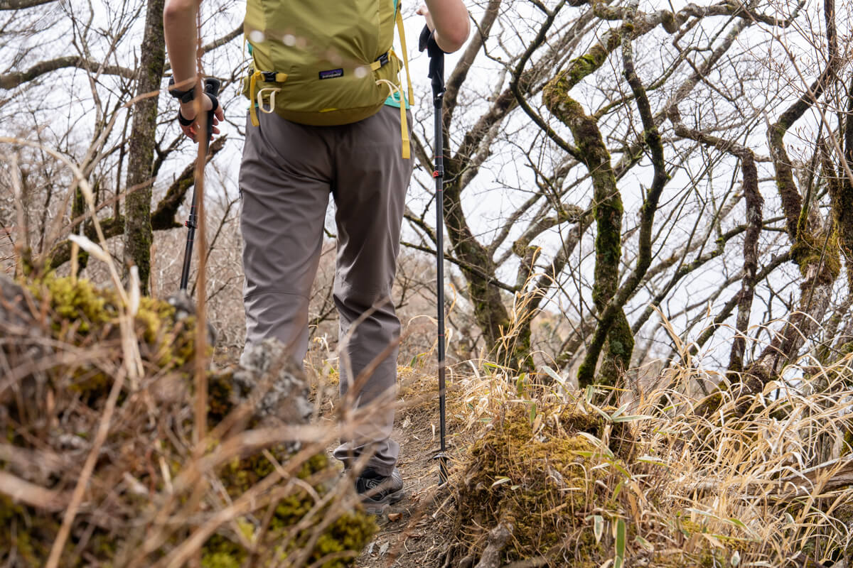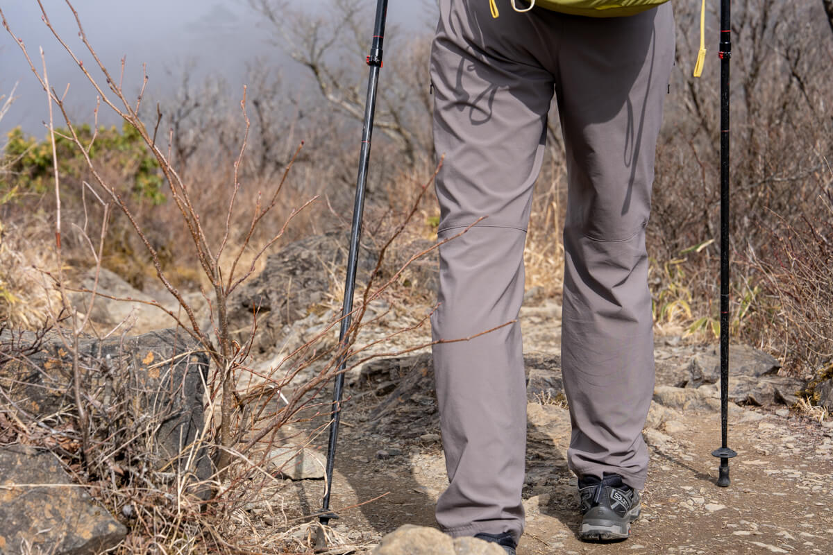 今回は本格的な真夏の登山というわけにはいかなかったものの、それでも15℃を超える暖かな陽気の中での低山トレッキングを含めて数回穿いて歩くことができました。ここ数年ではもう4月にもなると、トレイルを歩いているうちにパンツも汗による蒸れやベタつきが不快なだけでなく、大きな段差を越える時には膝が引っかかったりして疲労が蓄積しやすくなってきます。そんなこれからの暑い季節を想定しながら、ややアップテンポで汗をかきやすい状況での試着です。