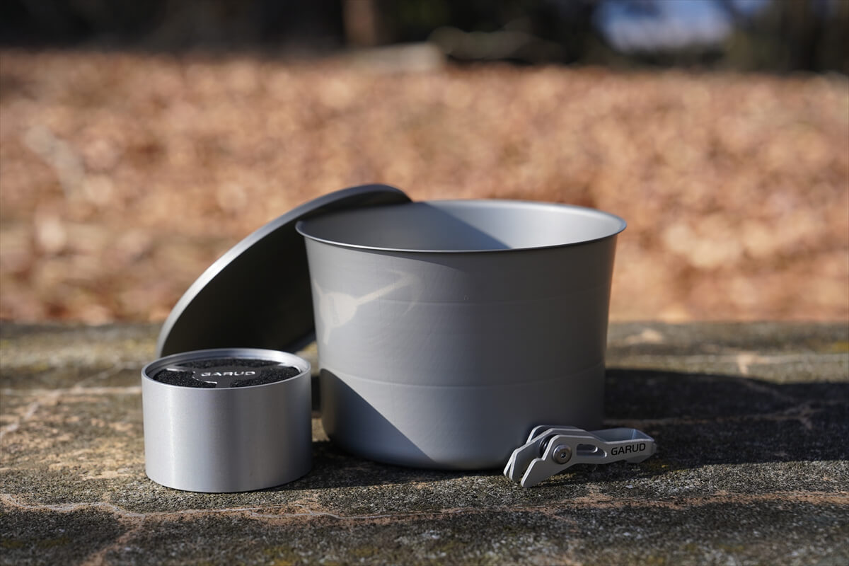 GARUDは紹介するクッカー、ストーブの他にもポッドリフターの「tsuibami」やゴトクにもなる専用の風防「hizutsu」もラインナップされていて、それらを合わせることで完璧な「超軽量炊飯調理セット」が完成します。