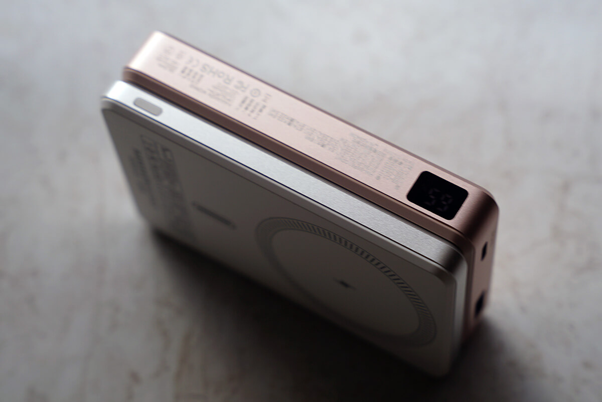 すでに初代「SSPB」を導入済みであったこともあり、筆者は新型「SSPB」との差が大きく感じました。初代「SSPB」は自覚できない安全性の高いモバイルバッテリーという地味な印象でしたが、新型「SSPB」はマグネット式ワイヤレス充電に対応したことで使い勝手が劇的に向上。