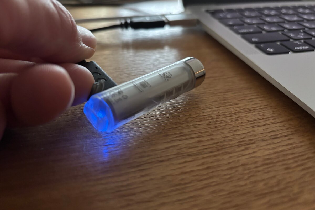 Aurora A7はバッテリー容量が330mAhと大きくないため、LEDフラッシュライトのHighモードで約1時間、ランタンライトのHighモードで約1.5時間と短い時間しか稼働させることができず、連続使用を想定するシーンには向きません。