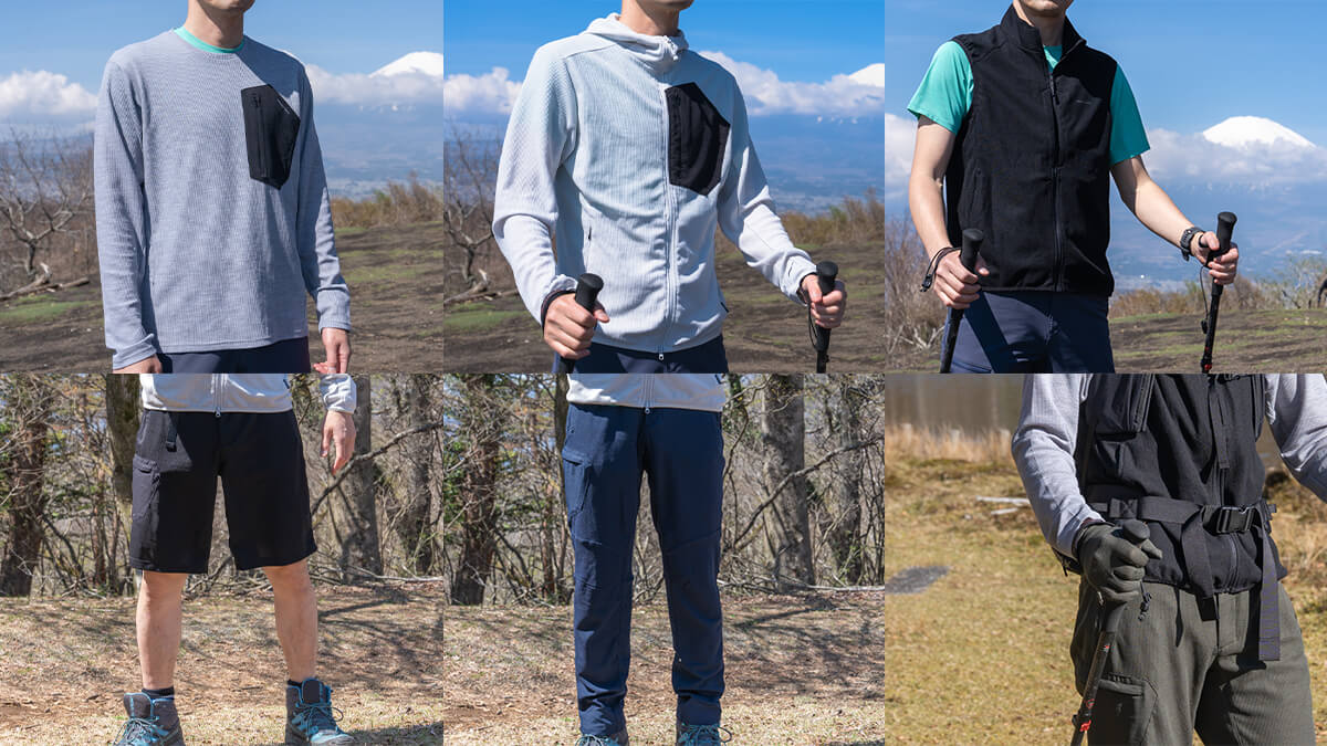 | 保温性 | ★★★☆☆ ※ベスト・長袖Tシャツ・ショーツは★★。また風の強さや上にシェルを羽織るかどうかでも大きく変わる |